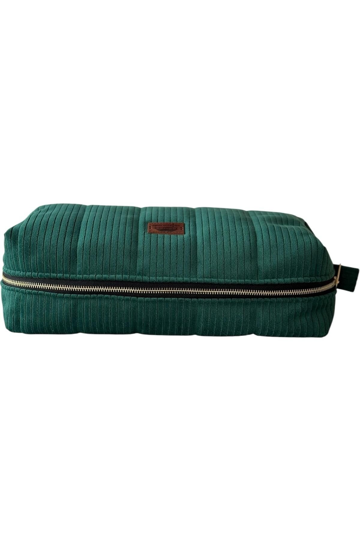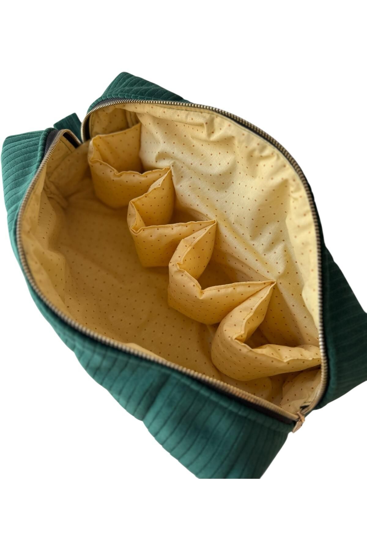 Kadife dokusu ve çok bölmeli iç tasarımıyla bu oragnizer çanta, eşyalarınızı düzenli ve ulaşılabilir tutmanız için ideal. Saç şekillendirici, makyaj ürünleri, bakım eşyalarına, dikiş malzemelerinden, hobi araçlarına kadar birçok farklı kullanım alanına uygundur. İç kısmındaki pamuklu, puantiyeli astarı hem şık hem de koruyucudur.