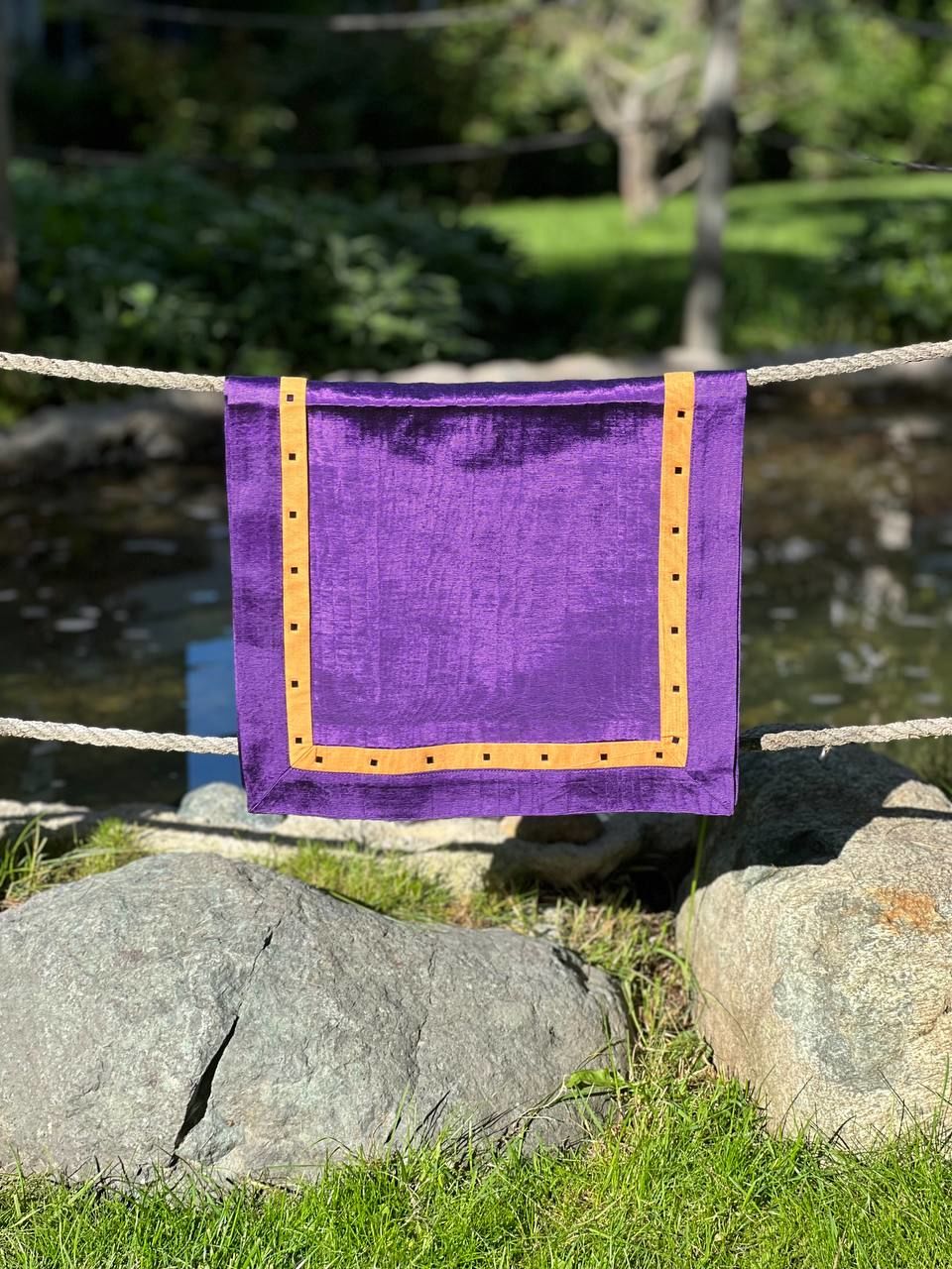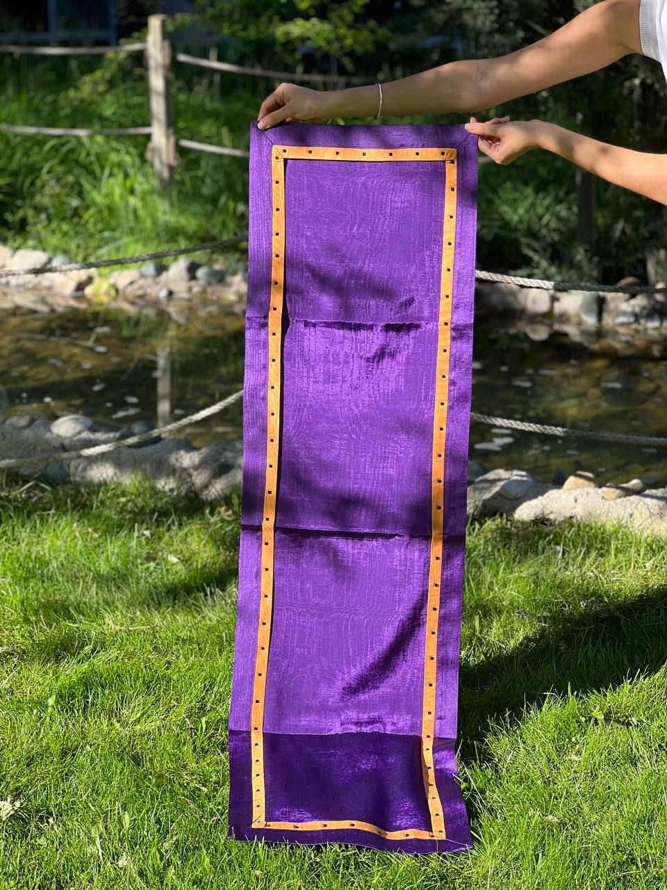 İpek ve pamuğun el emeğiyle hayat bulduğu, ince işçiliğiyle göze çarpan Kutnu kumaşı ile tasarlanan ANTEP DEKORATİF RUNNER serisi...Renkleri ve geleneksel dokusuyla modern çizgilerin buluştuğu ANTEP DEKORATİF RUNNER serimiz sofralarınıza hem iddialı,hem modern hem de geleneksel bir hava katar. Üzerinde turuncu kumaştan içten çerçevesi vardır. Çerçevenin üstü mor taşlarla süslüdür. Runner'larımızn ölçüsü 40*140 cm'dir.