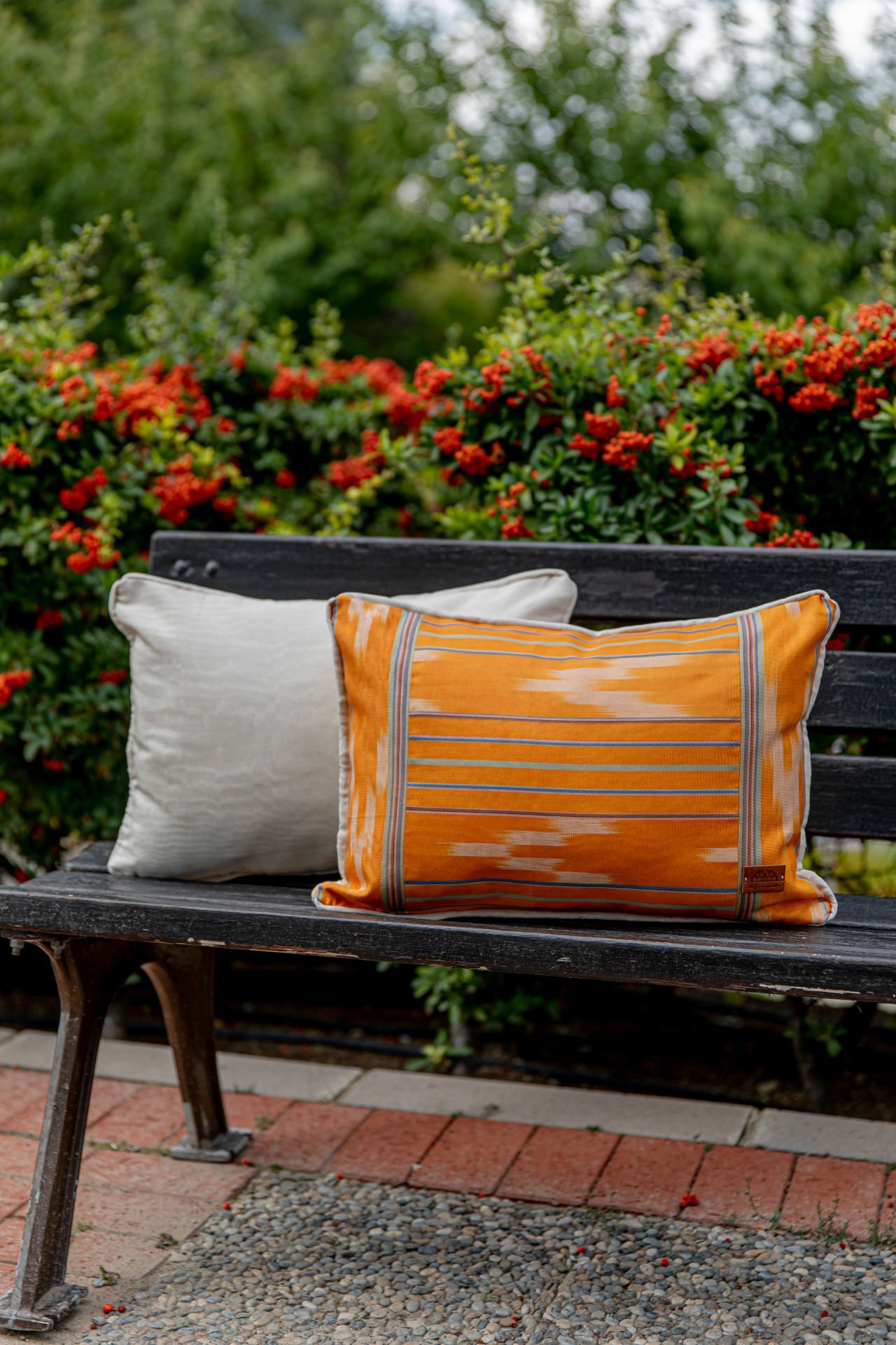 İpek ve pamuğun el emeğiyle hayat bulduğu, ince işçiliğiyle göze çarpan Kutnu kumaşı ile tasarlanan Antep GÜNEŞ serisi...Renkleri ve geleneksel dokusuyla modern çizgilerin buluştuğu Antep GÜNEŞ serimiz bulunduğu ortama hem iddialı,hem modern hem de geleneksel bir hava katar. Ön ve arka yüzü düz renkli kumaştır, kenarları biyelidir. Gizli fermuarlıdır. Serinin diğer renkleriyle set olarak kullanılabilir. Ölçü: 50*35 cm