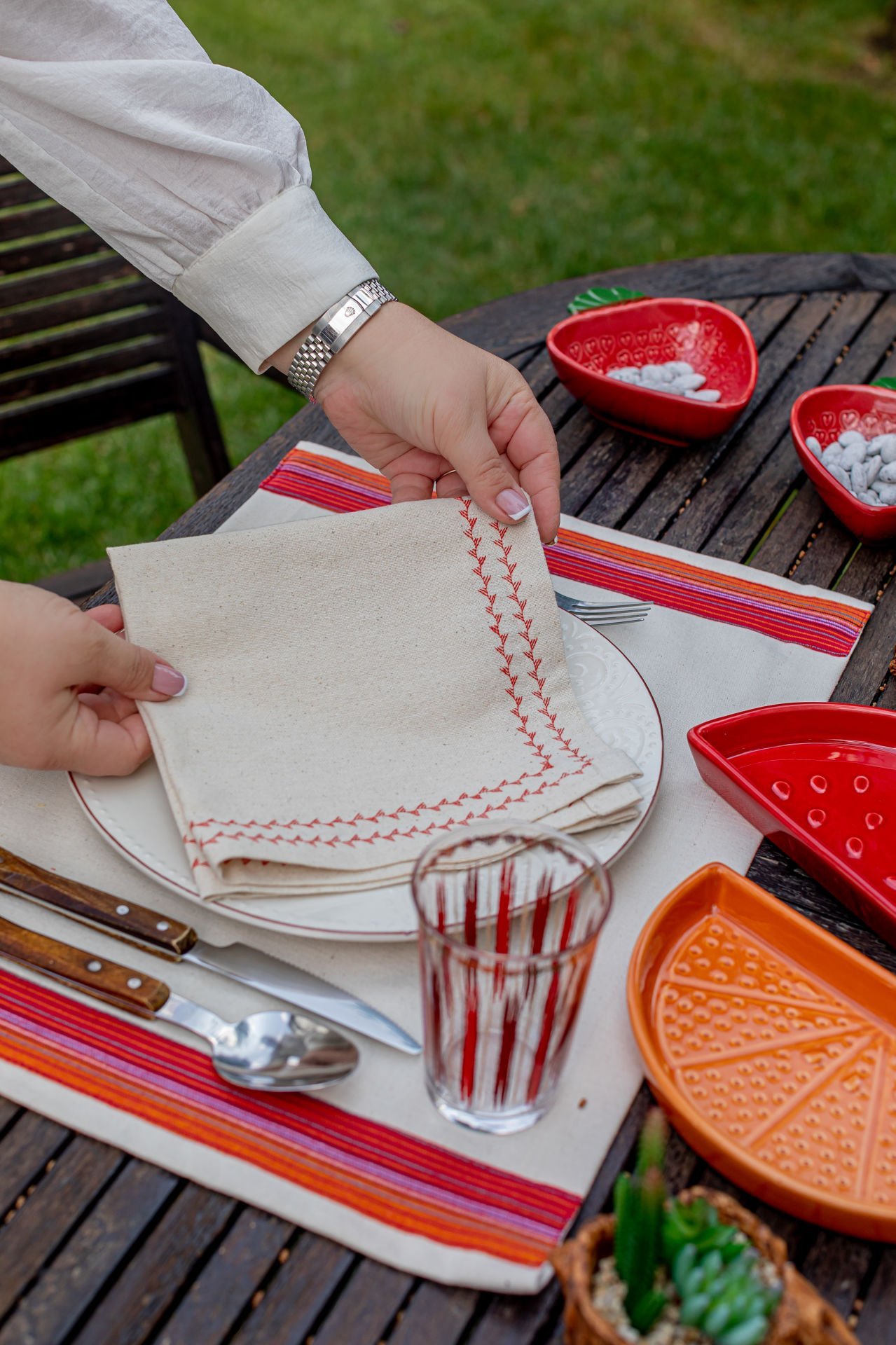 BULDAN Serimiz...%100 pamuklu, ham kumaşla hazırlanmıştır.Kenarları çift sıra piko desenlidir. Baharı, doğallığı evinize taşır...