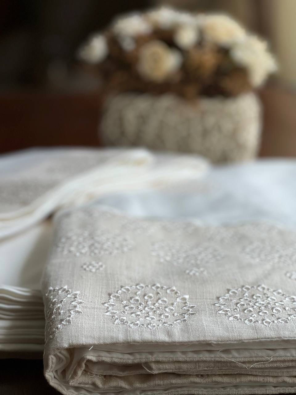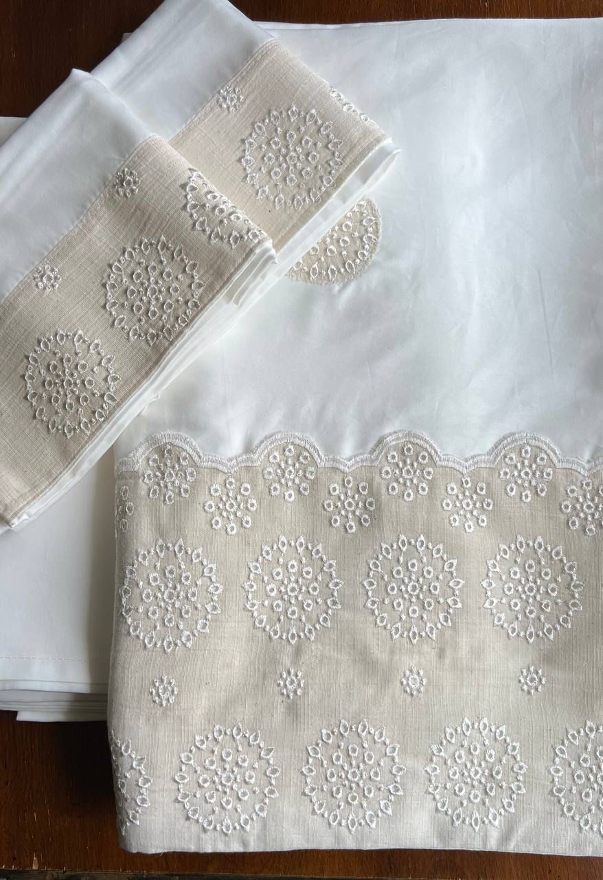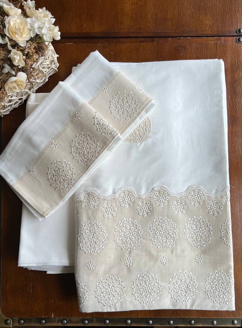 Nevresim takımının içinde 2 adet düz yastık, 2 adet fisto kumaşlı kastık, 1 adet alt çarşaf ve 1 adet nevresimi bulunmaktadır.